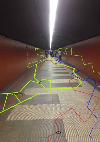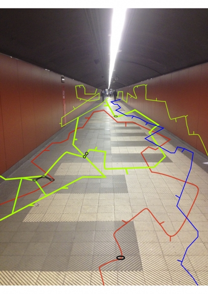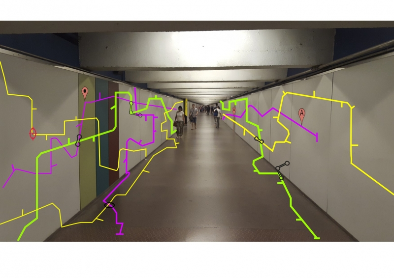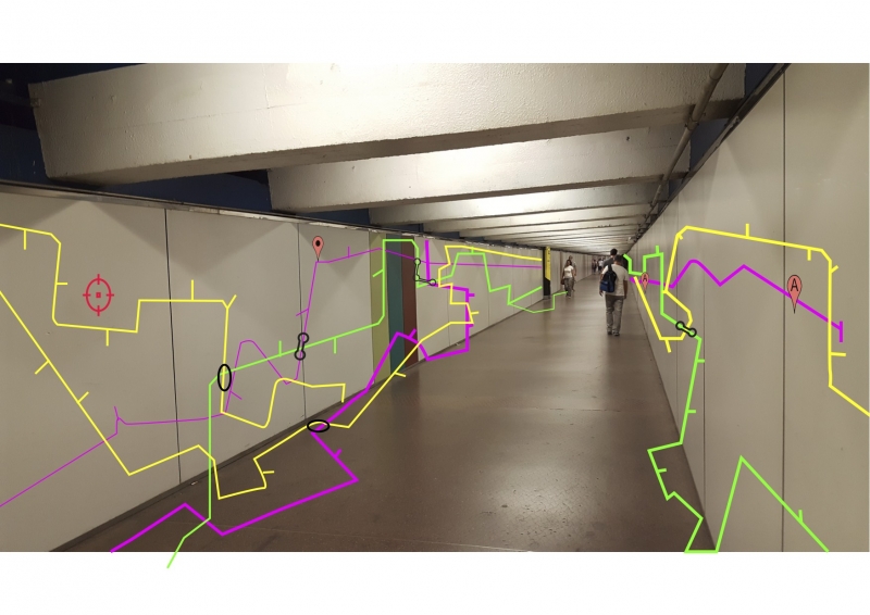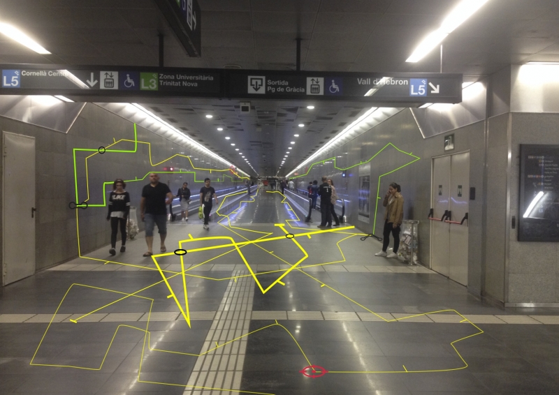 El cartografiado en este proyecto se plantea como un mecanismo de transformación crítica no institucionalizada de la esfera pública y urbana, en este caso el mapa se condesa en una propuesta de intervención en el espacio público. Planteamos un recorrido por algunas estaciones del metro en Barcelona, las cuales presentan largos recorridos y espacios disfuncionales, vigilados- inseguros, poco accesibles o bien son escaparates de publicidad o turismo, sin embargo los intereses económicos en estos espacios prevalecen ante una estructura precaria.