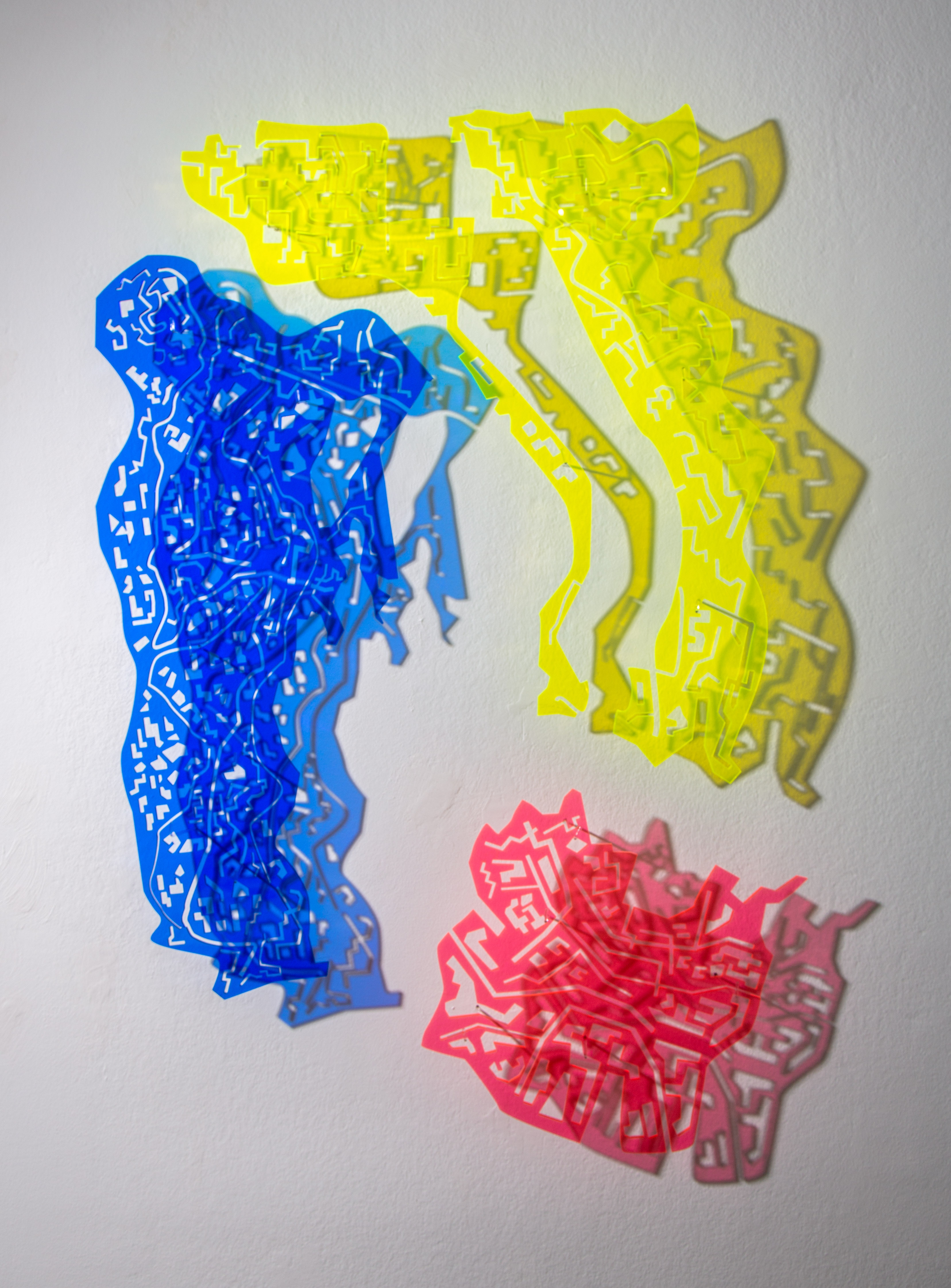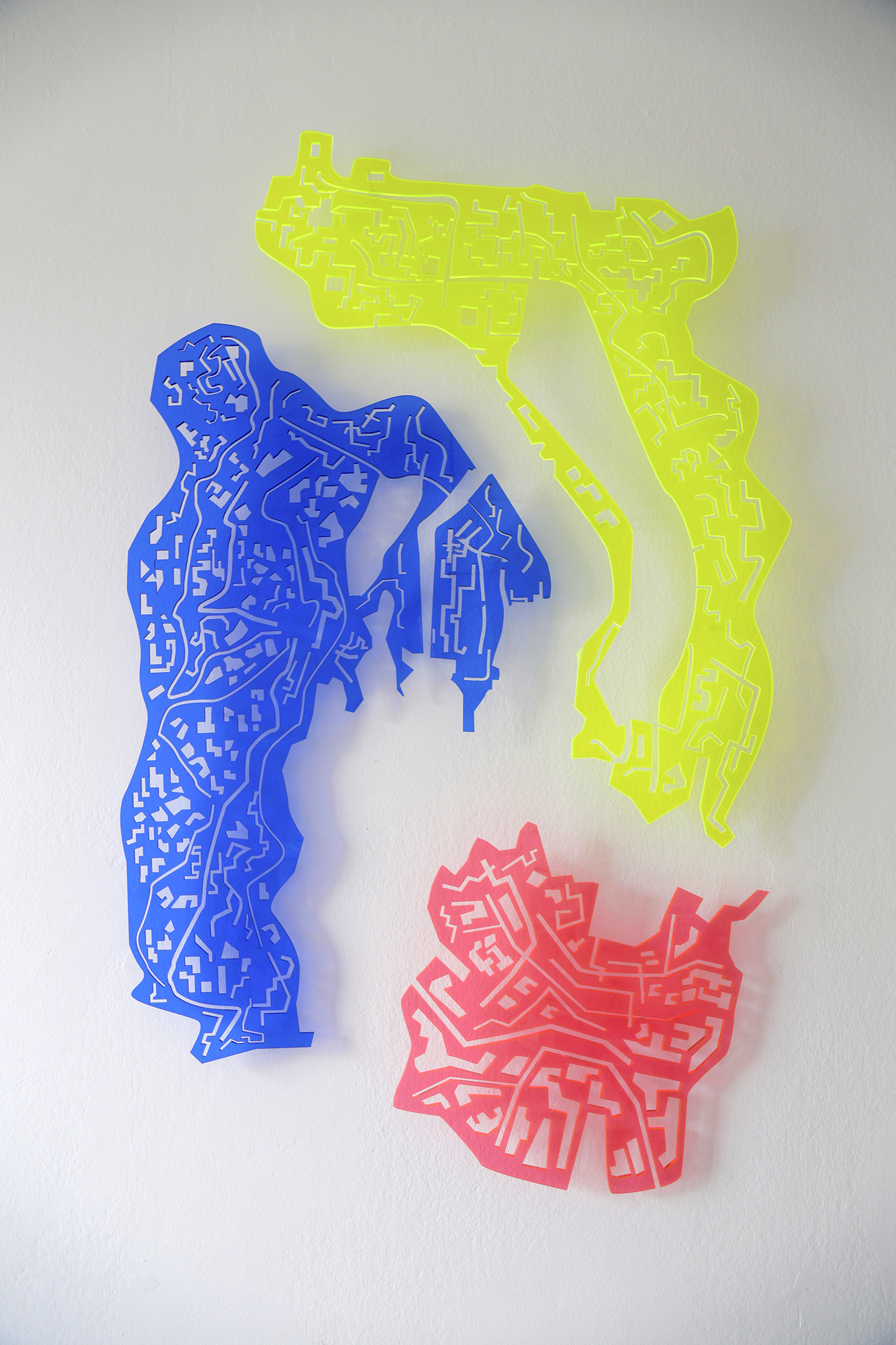 Natalia has created an atlas of possible world maps. Her intention is to generate a dissolution of territories and borders in order to replace them with imaginary divisions and dilated spaces – where the recognizable and utilitarian representation of the map disappears. Moreover, composing dystopian cartography, which leaves a mark, appropriates space and speculates between the imaginary – reality. she proposes a series of fragmented, fragile and sensitive territories, where the imaginary manifests itself as a position in which the state of instability, uncertainty and disorientation that we constantly fear can be extremely fruitful. Approaching us to a construction of micro-utopias that disarticulate that apocalyptic or sweetened vision of reality imposed by hegemonic power structures.