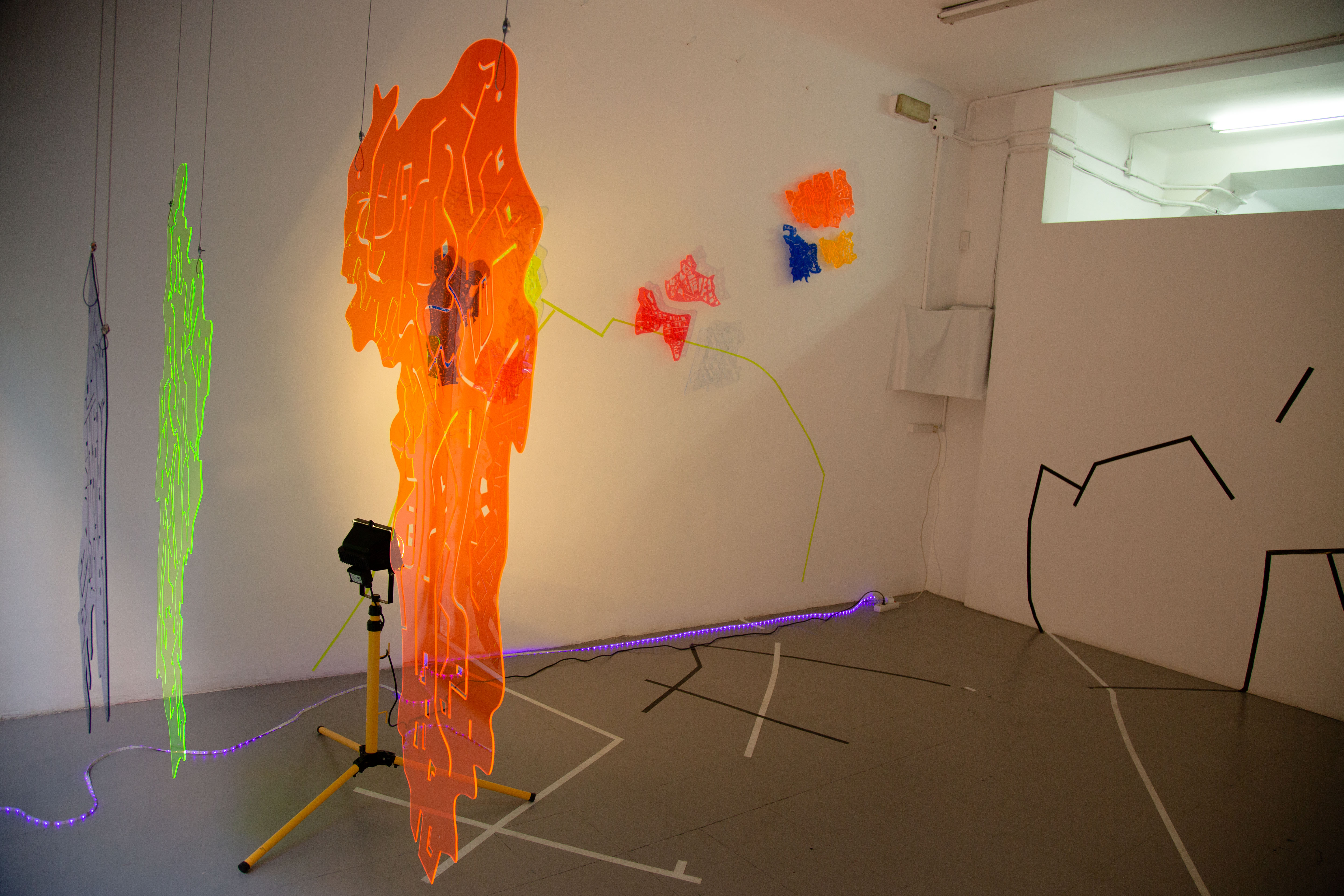 Top down – bottom up, is collection of material from over the last four years, linking different stages of experimentation that are connected and interwoven in an explorative process, from a subjective, intuitive, sensitive and feminine point of view. The material has been compiled into a site-specific installation at Tangent Projects gallery.